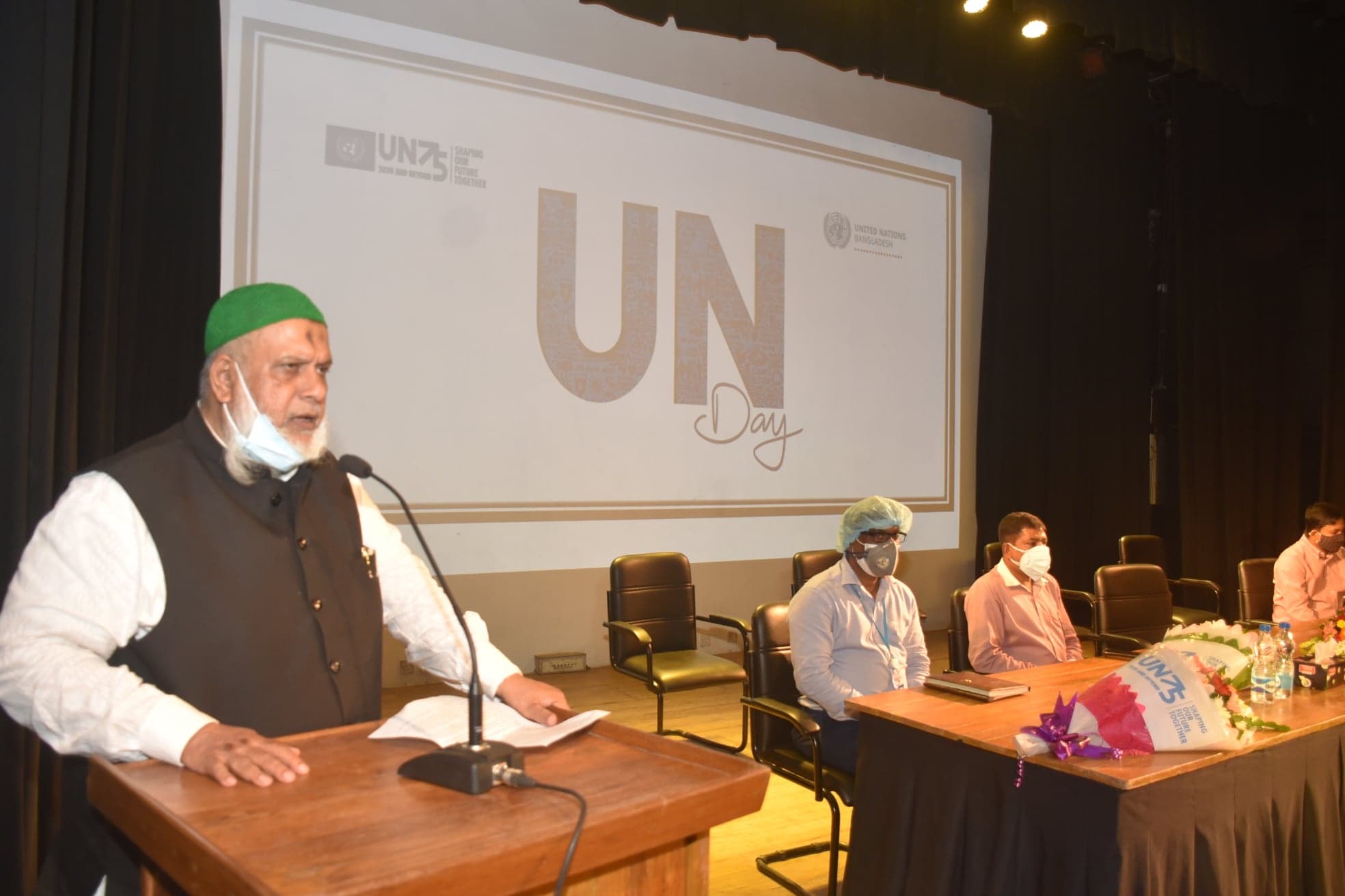 অনুষ্ঠানে পাওয়ার পয়েন্টে জাতিসংঘের কার্যক্রম প্রদর্শন করা হয় এবং কেক কেটে জাতিসংঘের ৭৫ তম বর্ষপূর্তির উদযাপন করা হয়।