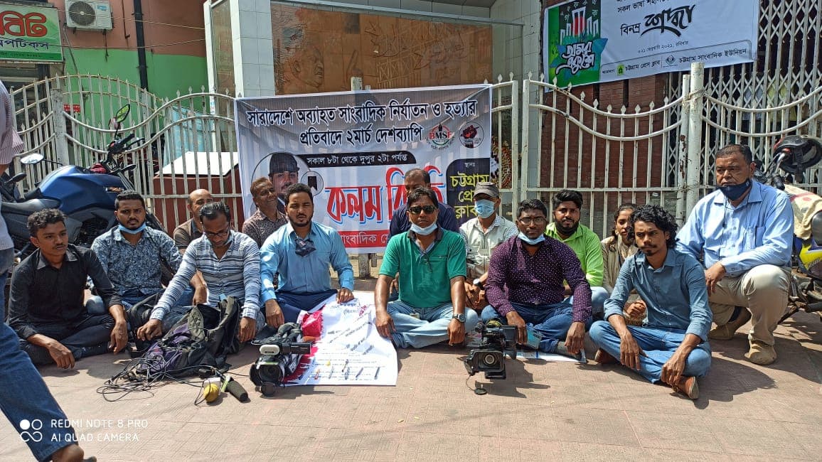এরই অংশ হিসেবে আজ মঙ্গলবার সকাল ৮ টা হতে দুপুর ২ টা নাগাদ চট্টগ্রাম প্রেস ক্লাব প্রাঙ্গণে বিএমএসএফ চট্টগ্রাম জেলা কমিটির উদ্যোগে এ কর্মসূচি পালন করা হয়েছে । অবস্থান কর্মসূচিতে বক্তব্য রাখেন বাংলাদেশ মফস্বল সাংবাদিক ফোরাম কেন্দ্রীয় কমিটির সহ- সম্পাদক সোহাগ আরেফিন , কেন্দ্রীয় কমিটির গন যোগাযোগ বিষয়ক সম্পাদক কায়ছার ইকবাল চৌধুরী, চট্টগ্রাম জেলা কমিটির ভারপ্রাপ্ত সাধারন সম্পাদক জুনায়েদ হাসান , অর্থ বিষয়ক সম্পাদক মো: আব্দুল কাদের রাজু ও চট্টগ্রাম অনলাইন প্রেস ক্লাবের সাঃ সম্পাদক শহিদুল ইসলাম ।