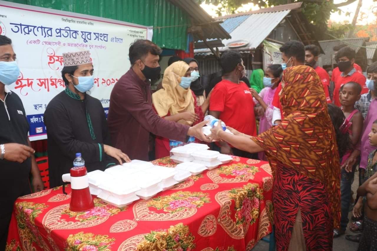 সেচ্ছাসেবী সংগঠন তারুণ্যের প্রতীক যুবসংঘ কর্তৃক ইফতার, ঈদ সামগ্রী ও মাস্ক বিতরণ